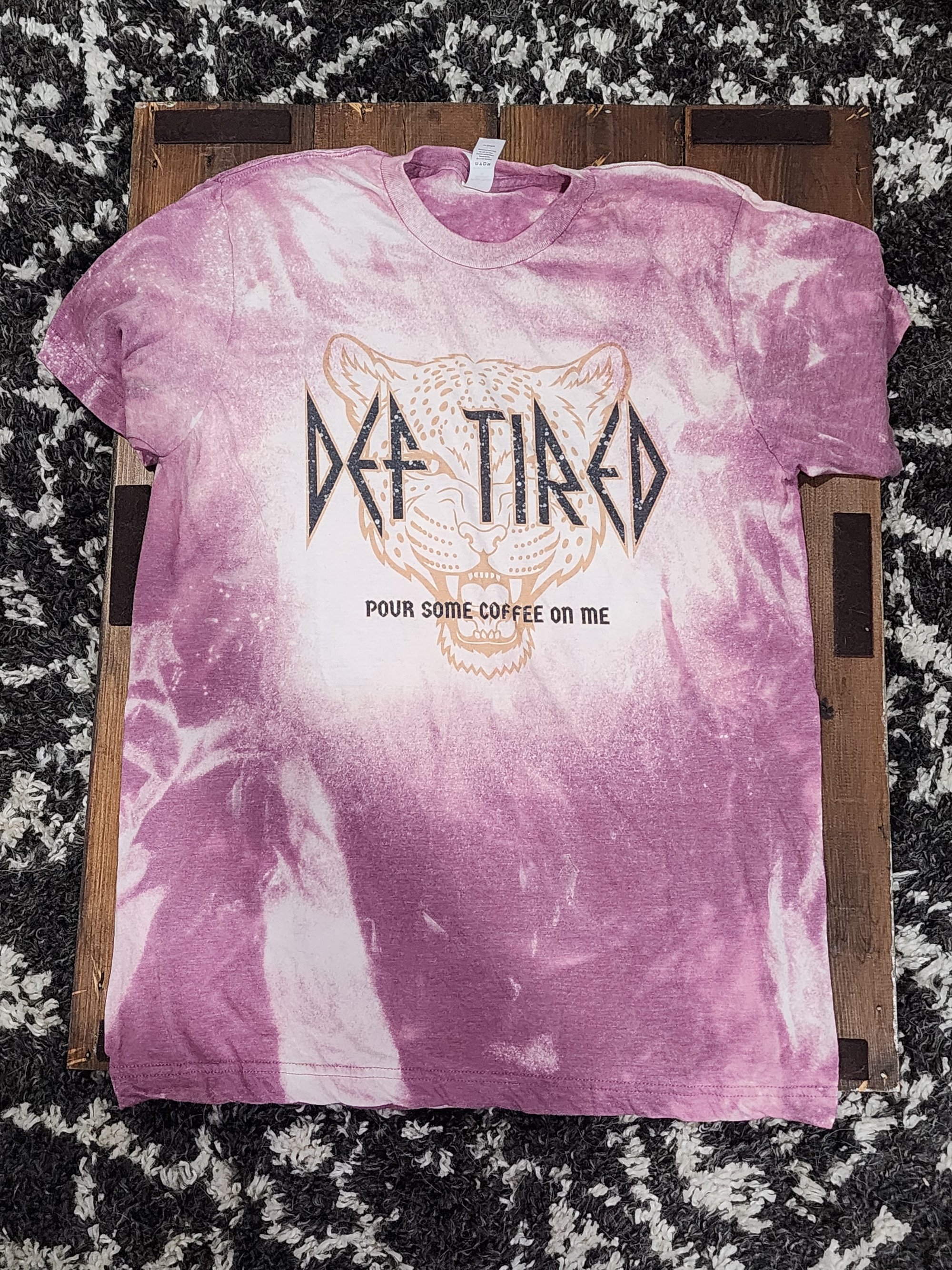 Def Tired Pour some coffee on me dyed poly/ cotton blend Tee.